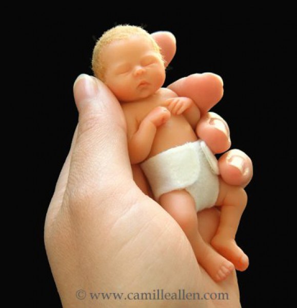 الا ان الحقيقة هي ان هذه الدمى هي أطفال منحوتة بالصلصال للفنانة التشكيلية كميل ألين Camille Allen و هي صاحبة موهبة مميزة في صناعة العرائس والتي تميزت بدقة أعمالها لدرجة يصعب عليك التفريق بين العرائس أو الأطفال الحقيقيين ..