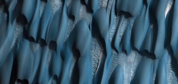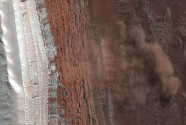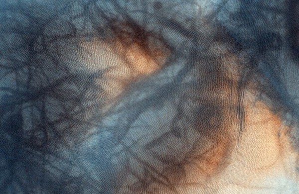المريخ يكشف بشكل طبيعي التربة الداكنة من الغبار في جميع أنحاء الكوكب، وإن نظرة فاحصة تكشف مخططات التنفس والدوامات في دروب الغبار. والرياح تجتاح الكثبان الجديدة في الصدأ والتربة، مما يجعل في الظلام ظهور الدوامات موحدة مع الطبقة العليا من الصدأ البرتقالي.