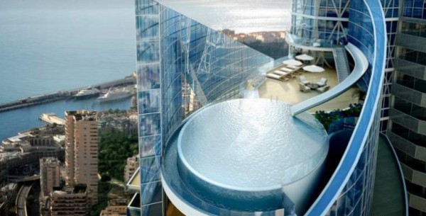 تقع أغلى شقة بالعالم في مدينة موناكو الفرنسية و التي تقدر بنحو 400 مليون دولار بحسب ما ذكرته جريدة ” صنداي تايمز البريطانية ” . تتكون الشقة من خمسة طوابق تضم شلال مياة و حوض سباحة خاص .