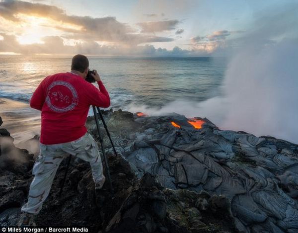 وتظهر المشاهد كيف أن مورجان (42 عاماً) كان على بُعد خطوات فقط من ثورة بركان "كيلوا" في جزر هاواي، وكيف أنه التقط مشاهد رائعة الجمال لـ"اللافا" التي تخرج من قلب البركان الثائر.